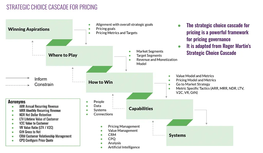 At Ibbaka, we start most engagements with Roger Martin’s Strategic Choice Cascade, which we have adapted for pricing.