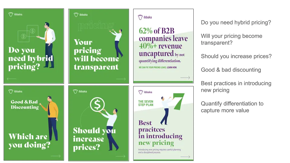 Our customers often come to us with a standard set of question about value and pricing. To help everyone answer these questions and to show how Ibbaka goes about answering these questions we are sharing a series of LinkedIn carousels. Here are the first six. Let us know what other ones you would like.