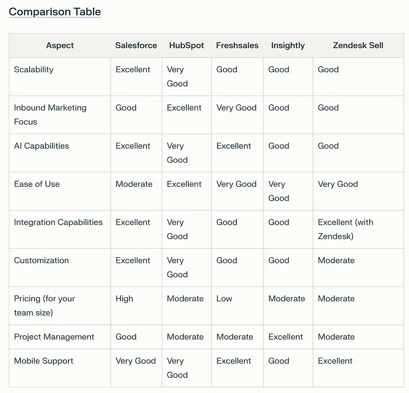 You are the new sales operations manager at a B2B software company. You are considering changing your CRM system. Your job is to identify and qualify potential solutions.