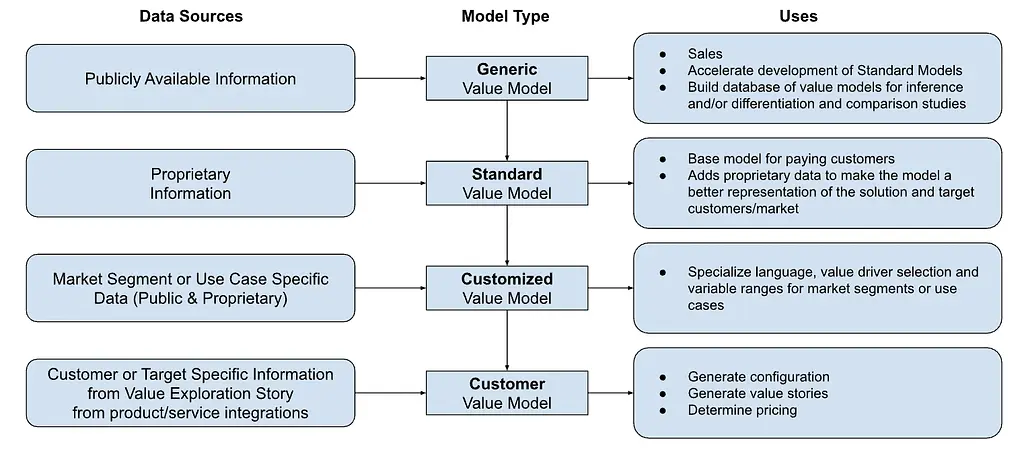The Customer Value Management space has been ticking along for the past twenty or so years, but it is starting to transform and accelerate as generative AI changes how B2B applications are built, packaged, pricied and create value. The old approaches where value models and their offshoots like ROI calculators are built by hand and then customized with a small range values for each customer will not scale for the new world. We need to move from building value models to generating value models and then supporting mass customization.