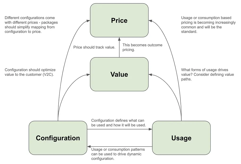 Packaging and Configuration, Usage, Value, and Pricing work together as a system