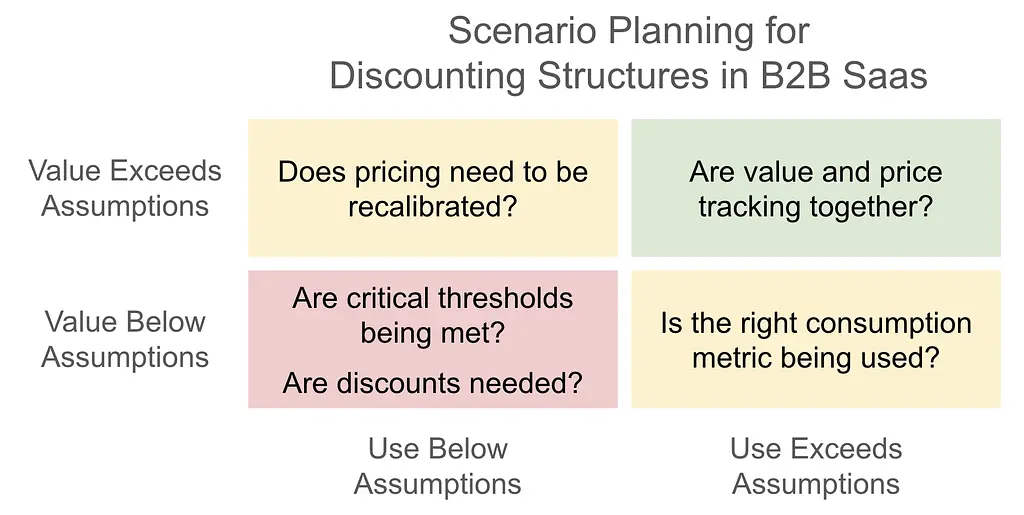 That is the ideal world, but most B2B clients will want to negotiate, and the larger the opportunity the more they have been trained to expect some level of discounting. Buyers, especially from procurement, have been trained to lock in future discounts at the beginning of a deal and will often ask for discounts based on target levels of usage that they are not willing to commit to.