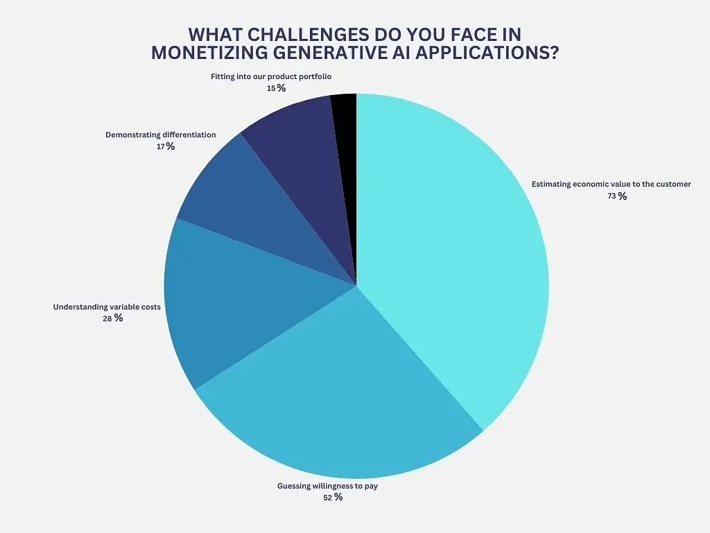 Guessing willingness to pay: 52.11% find it challenging to determine customers' willingness to pay, reflecting the novelty of generative AI solutions.