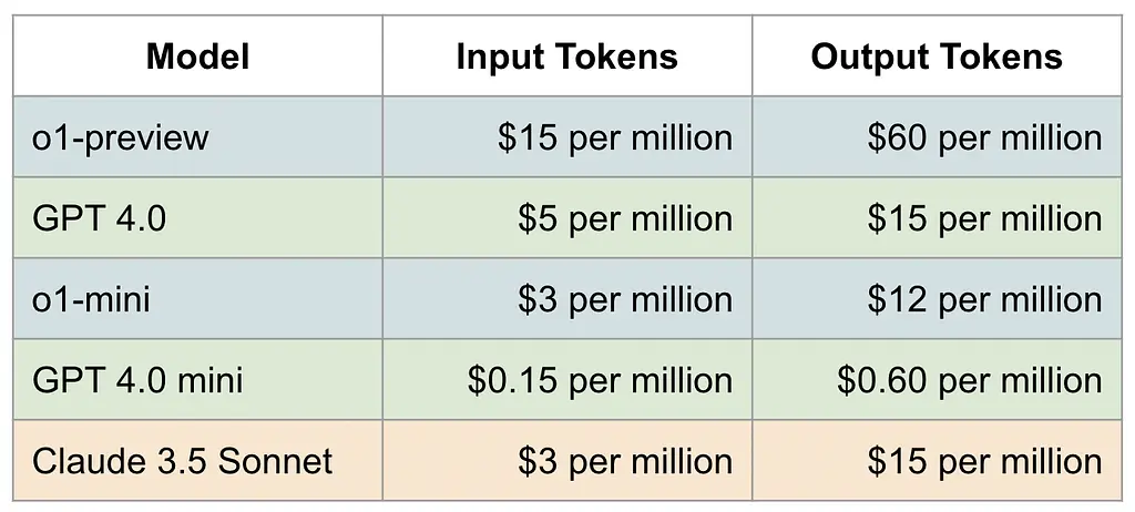 The two o1 models are priced as follows: