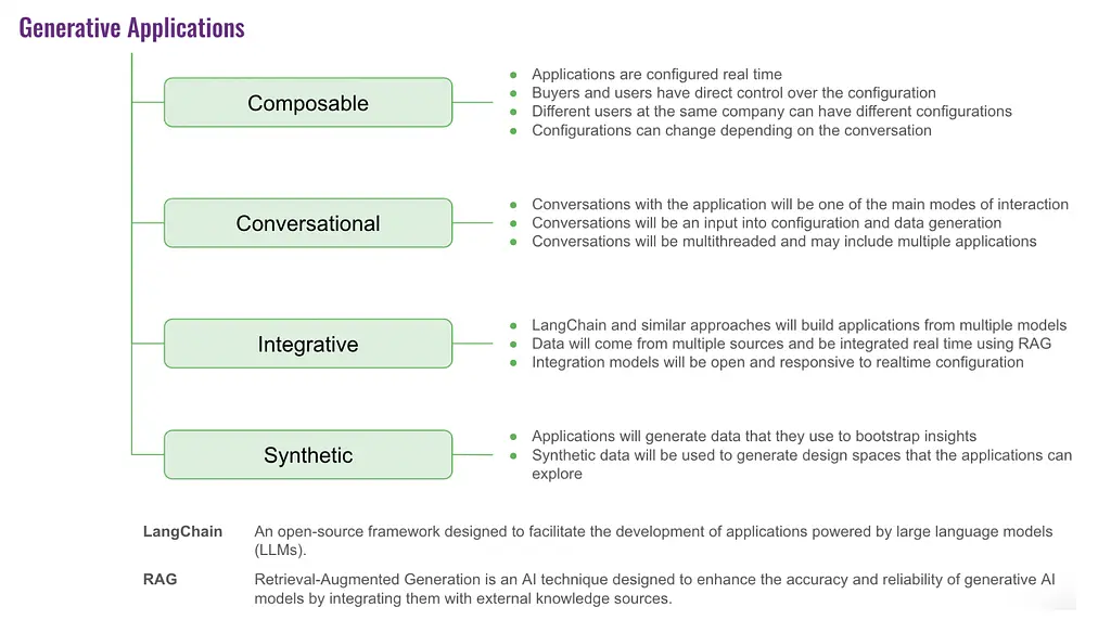 Generative pricing responds to four emergent properties of generative AI applications. These applications are composable, conversational, integrative and synthetic.