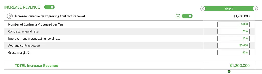 The following three value drivers are all from the same value model. The value model is for a generic contract management system.